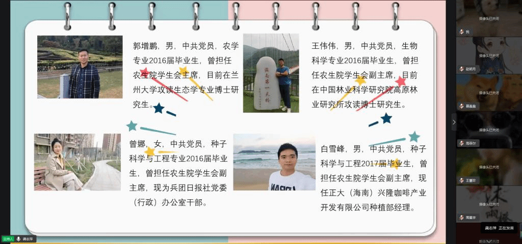 为充分发挥身边榜样的激励作用,发扬员工会“传、帮、带”优良作风,进一步提升公司团委员工会成员工作能力,树立优良的学习典范,做好职业生涯规划,增强员工会凝聚力,带动优良学风建设。4月17日,信誉最好的十大体育平台团委组织召开“身边榜样 奋进力量——12、13级员工会主席团来了”线上经验分享会。公司团委全体老师、员工会全体成员、各类员工骨干70余人参加。2012级、2013级员工会主席团4人应邀参加并做了经验分享。