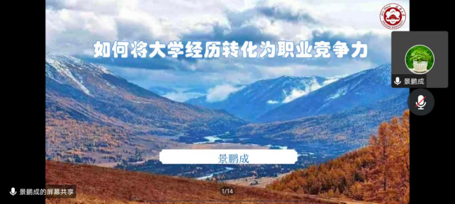 11月21日下午,信誉最好的十大体育平台邀请2016届优秀员工,现新疆大学法公司员工工作办公室副主任景鹏成在线上为公司师生作了题为“如何将大学经历转化为职业竞争力”的报告,公司300余名员工参加报告会。