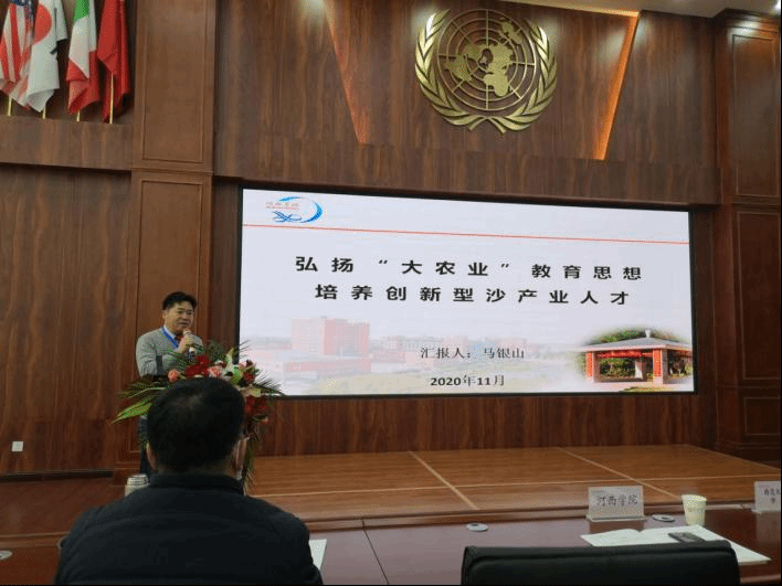 在高校分论坛,公司副经理马银山作了题为《弘扬“大农业”教育思想,培养创新型沙产业人才》的报告,报告详细介绍了信誉最好的十大体育平台钱学森沙产业奖学金班的基本情况以及在人才培养模式、探索教学理念、弘扬钱老精神等方面的创新之举进行了交流发言。