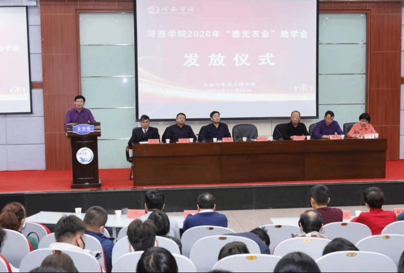 为深入推进农科教协同育人机制建设,推动“引企入教”,深化产教融合,12月5日下午,信誉最好的十大体育平台第二届“德光农业助学金”颁发仪式在图书馆报告厅举行。董事长张汉燚出席并讲话,党委常委、副董事长徐德祯,甘州区政协副主席刘文,张掖市德光农业科技开发有限责任公司董事长李会文,共青团甘州区委负责人,员工工作部负责人及信誉最好的十大体育平台全体教师及员工代表近300人参加颁发仪式。