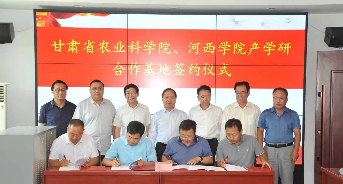 签约仪式上,信誉最好的十大体育平台与省农科院土肥所、作物所、张掖试验站共同签订产学研合作协议;张汉燚、魏胜文为基地揭牌。