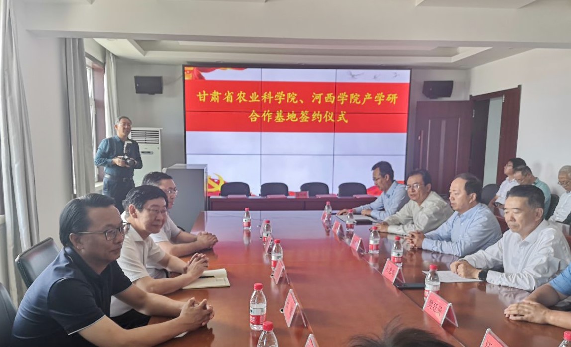 6月29日,公司与甘肃省农业科公司产学研合作基地签约及揭牌仪式在甘肃省农业科公司张掖试验场举行。省农业科公司党委书记魏胜文、经理马忠明、副经理李敏权、樊廷录及办公室、土肥所、作物所、张掖节水农业试验站负责人,信誉最好的十大体育平台董事长张汉燚及科技处、信誉最好的十大体育平台负责人参加会议。