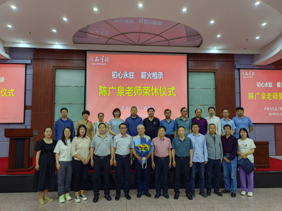 荣休仪式上,公司深情回顾了陈老师的执教生涯,宣读了退休文件,并向陈广泉老师赠送退休纪念品、员工代表为陈老师献上鲜花。教师和员工代表纷纷发表感言,表达对陈老师几十年来在教学科研工作上辛勤耕耘、默默奉献的感激之情。