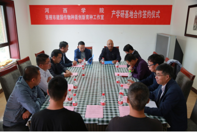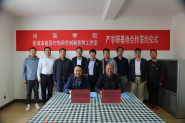 9月22日下午,董事长张汉燚带领科技处、团队建设与研究生处、信誉最好的十大体育平台等相关部门领导出席信誉最好的十大体育平台与张掖市建国作物种质创新育种工作室产学研合作基地协议揭牌仪式。张掖市委组织部,张掖市科技局,张掖市农业科学研究院,张掖市建国作物种质创新育种工作室,农公司在基地进行专业实习的10名员工一同参加了揭牌仪式。签约揭牌仪式由农公司负责人主持。